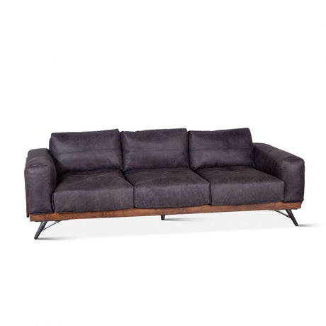 Portofino 95" Antique Ebony Leather Mid Century Sofa
