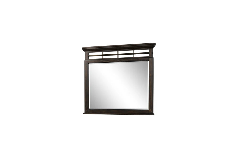 The rich, dark wood finish adds warmth and sophistication, making it a perfect complement to any dresser or vanity but especially the Bellamy Lane Dresser. Designed for both style and functionality, this mirror enhances the room's sense of space while offering a polished look. Pair it with other pieces from the Bellamy Lane collection for a cohesive, modern aesthetic.