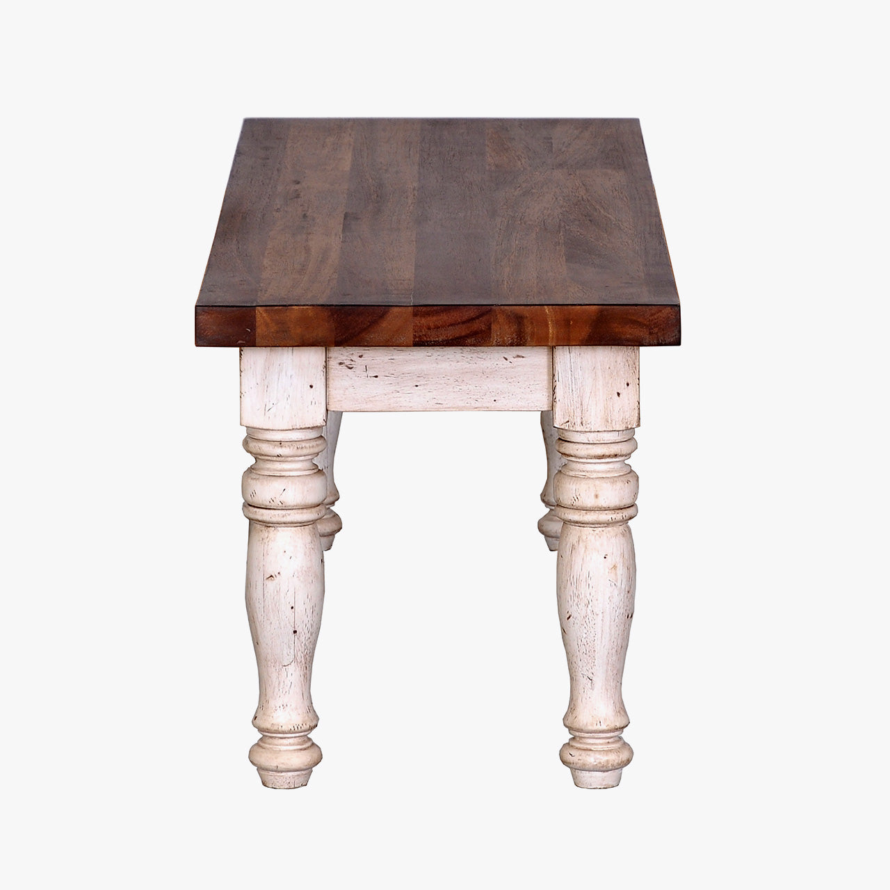 Solid wood tops with floating top construction. All wood is double sealed “by hand” before assembly to ensure correct and consistent moisture content dramatically reducing any chance of warping or splitting.