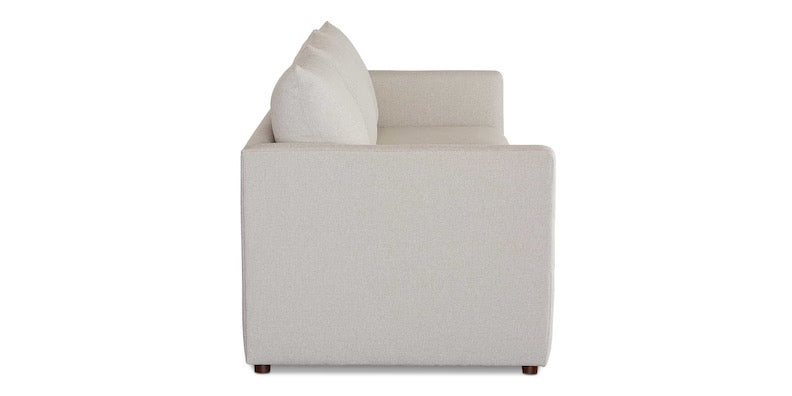 All pieces are top-stitched for durability, with topstitch box seat cushions and a loose knife edge back. Back and seat cushions are removable for easy cleaning. Wood legs are finished in a walnut tone. Our best price fabrics are available in Performance Texture Straw and Bone.