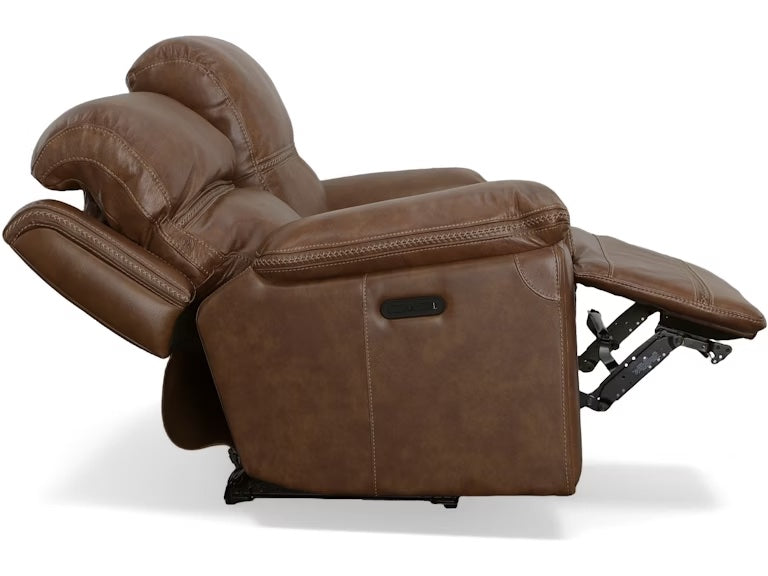 Heavy-thread cross-stitching detail is highlighted throughout Fenwick's frame adding an aesthetically pleasing feature. A square arm is finished with a pad overlay creating a charming design while contoured seating, a divided back cushion, and a fully padded footrest combine on Fenwick to create long-lasting support. A power reclining mechanism lets you change angles effortlessly from an upright to a fully reclined position, and a dual power button allows you to independently adjust the headrest for custom relaxation.