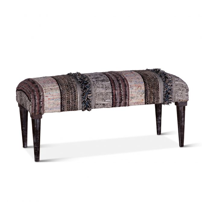 Marrakech 42" Moroccan Fluffy Black Accent Bench