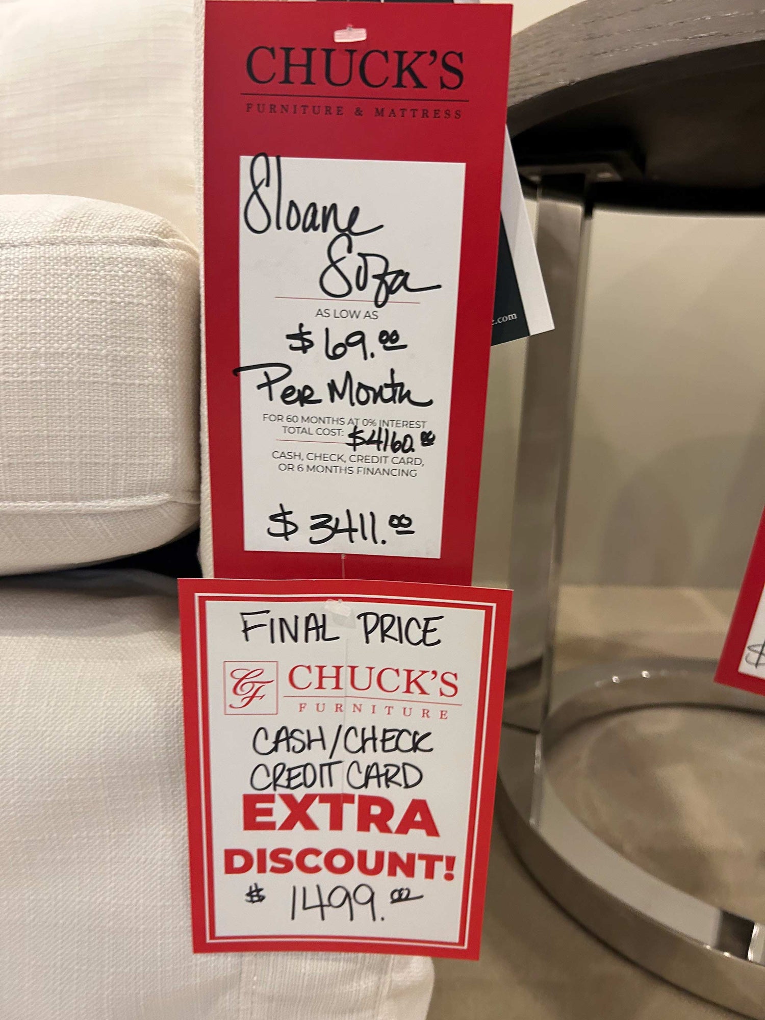 We make it easy to pay for your furniture! Choose no-interest financing and pay over time or get a discount for cash, credit card, or six-month financing. See our payment page for details.