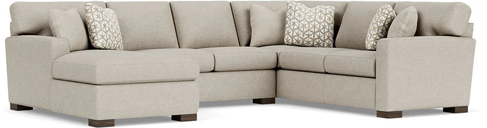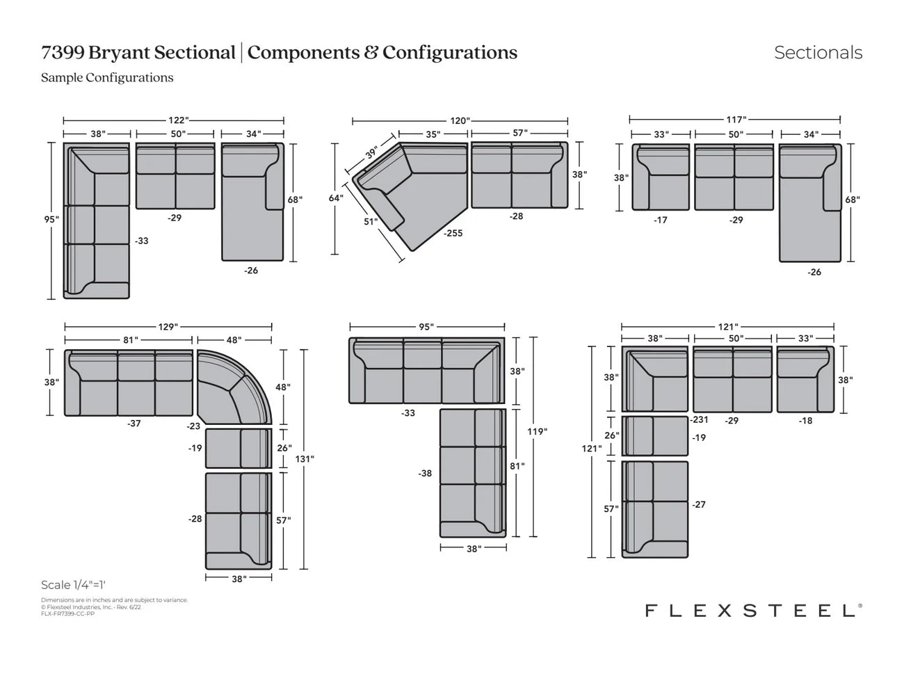 The arms and seat cushions are detailed with single-needle top stitching, while the bold block legs add a solid finish to this design. Multiple seating options make the Bryant sectional ideal for relaxing with company.